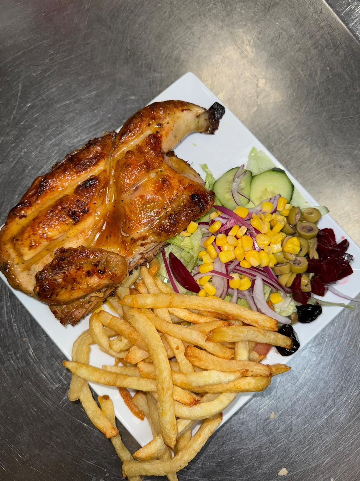 Découvrez notre poulet braisé, préparé selon les recettes traditionnelles d’Algérie. Mariné dans un mélange d’épices parfumées et d’herbes fraîches, puis cuit à la perfection sur le grill, il révèle toute la richesse et la générosité de la cuisine algérienne. La peau, dorée et croustillante, laisse place à une chair tendre et savoureuse, imprégnée des saveurs authentiques du terroir. Un véritable délice à partager, qui vous transportera directement au cœur des traditions culinaires de l’Algérie.